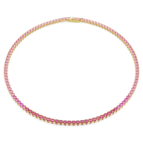 Delivering a vibrant pink shade, this necklace was made to mesmerise. The design features a full strand of round-cut crystals, all in a gold-tone plated setting that includes a secure and refined closure. The overall effect is one of uplifting beauty, allowing you to turn on the charm, whether by day or night.