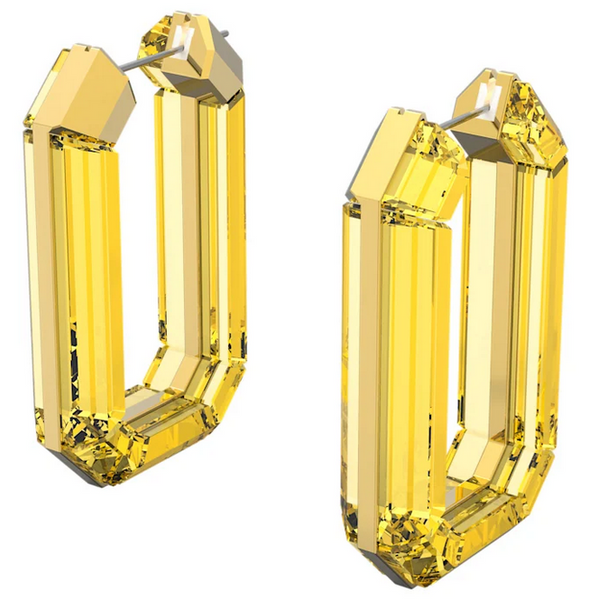 These statement Lucent hoops will lift any look with their radiant light. Designed in Swarovski’s signature octagonal shape, each piece features gold plating with crystallized facets that are bold and bright. Wear these sparkling yellow pierced earrings with a matching Lucent ring to maximize the effect.